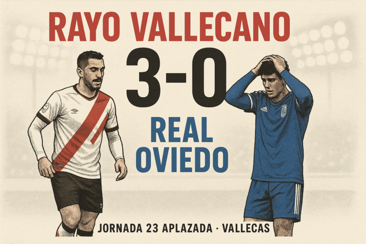 El Rayo Vallecano dio un paso de gigante en su lucha por la permanencia tras imponerse con claridad al Real Oviedo (3-0) en el partido aplazado de la jornada 23. En una noche de nervios en Vallecas, Jorge de Frutos firmó un doblete y un tercer gol cerró un triunfo que deja mucho aire a … Sigue leyendo El Rayo golpea en Vallecas: 3-0 al Oviedo y aire en la pelea por la permanencia